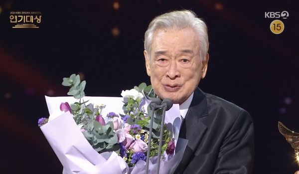 쫘잔~! 배우 이순재 선생님이 2024 KBS 연기대상에서 대상을 수상하며 역대 최고령 대상 수상자로 등극하셨습니다! 올해로 90세가 되신 이순재 선생님은 그야말로 살아있는 전설인데요, 이번 수상은 드라마 ‘개소리’에서 원로 배우로서의 깊이 있는 연기를 선보인 결과라 더욱 의미가 깊습니다. 🎉