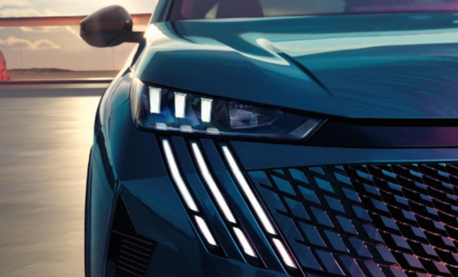 새로운 푸조 엠블럼, 사자 발톱 형상의 주간주행등, 수평 스트립이 더해진 헤드램프, 그리고 그라데이션 그릴이 조화를 이루며 미래지향적인 전면을 완성한다.