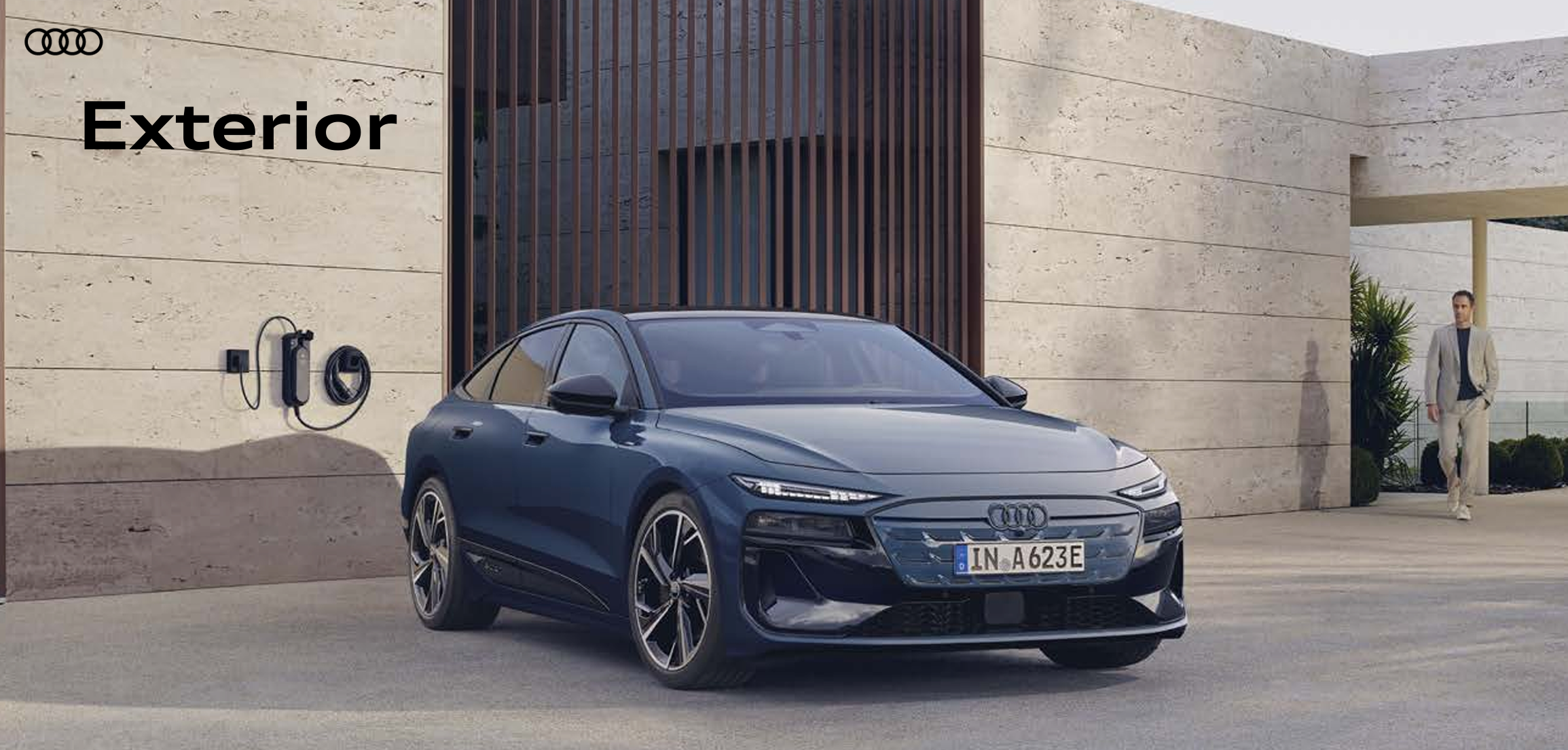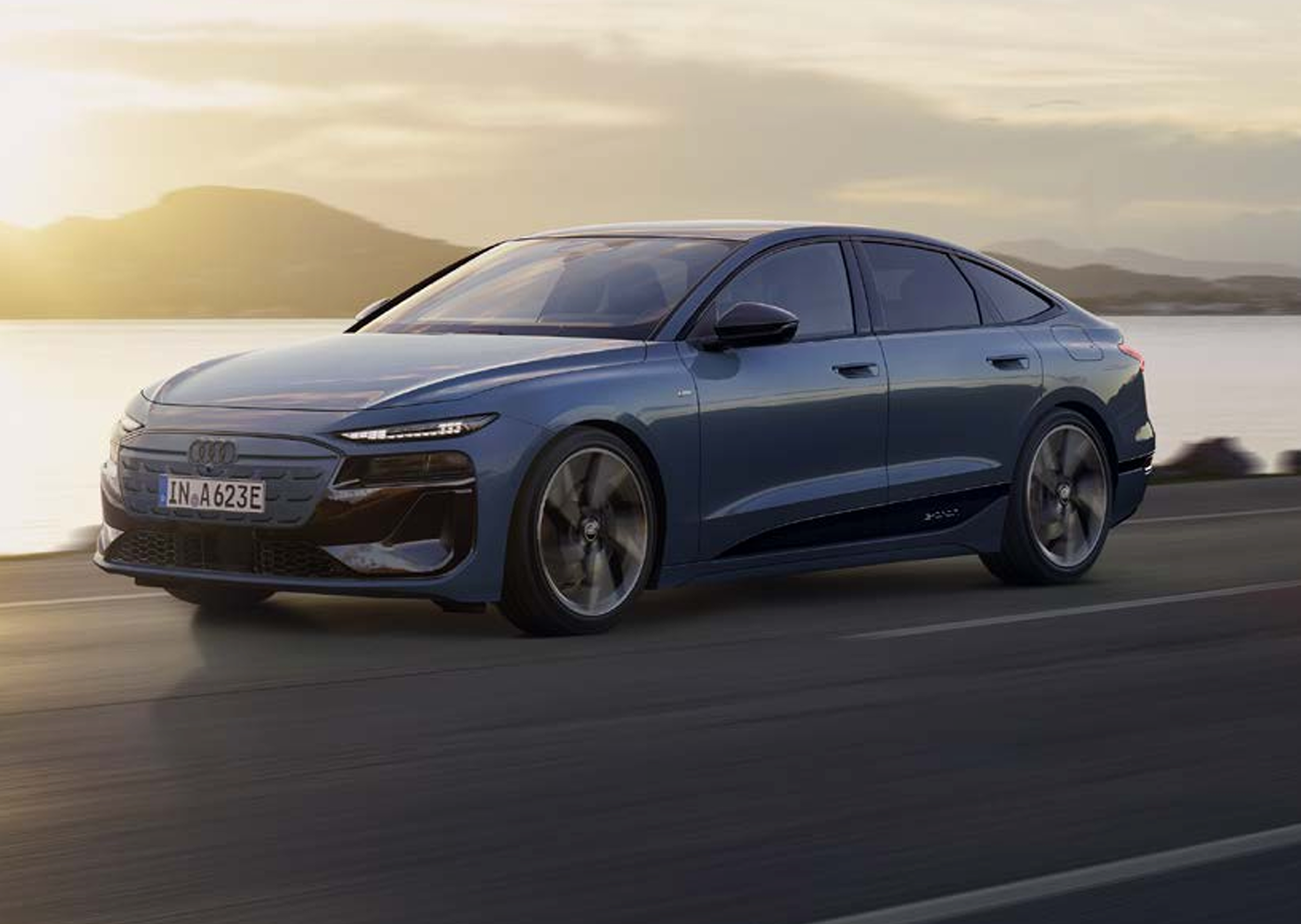 더 뉴 A6 e-트론은 아우디 역사상 최저 수준의 공기저항계수(Cd)를 구현한 스포트백 실루엣을 채택했다. 부드럽게 흐르는 루프 라인과 넓은 숄더 라인의 조합은 세련미와 역동성을 동시에 전달하며, 전기차 특유의 미래 지향적 디자인 언어를 반영한다.