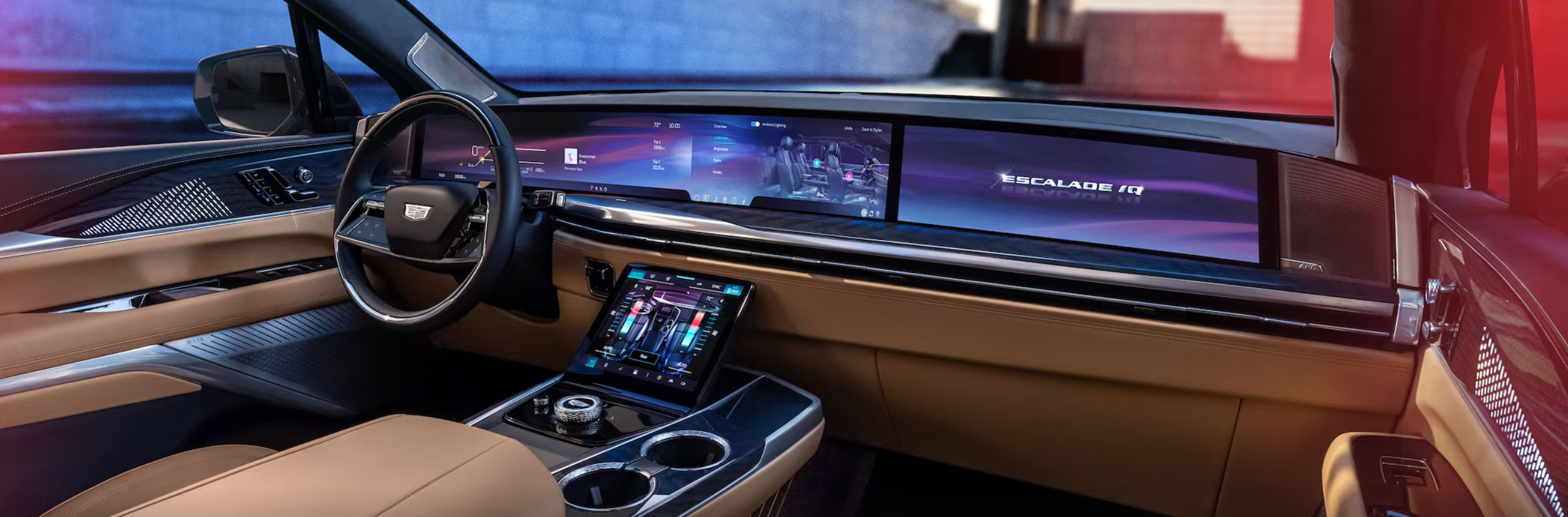 에스컬레이드 IQ의 실내는 한마디로 “기술로 만든 정숙한 라운지”에 가깝습니다.