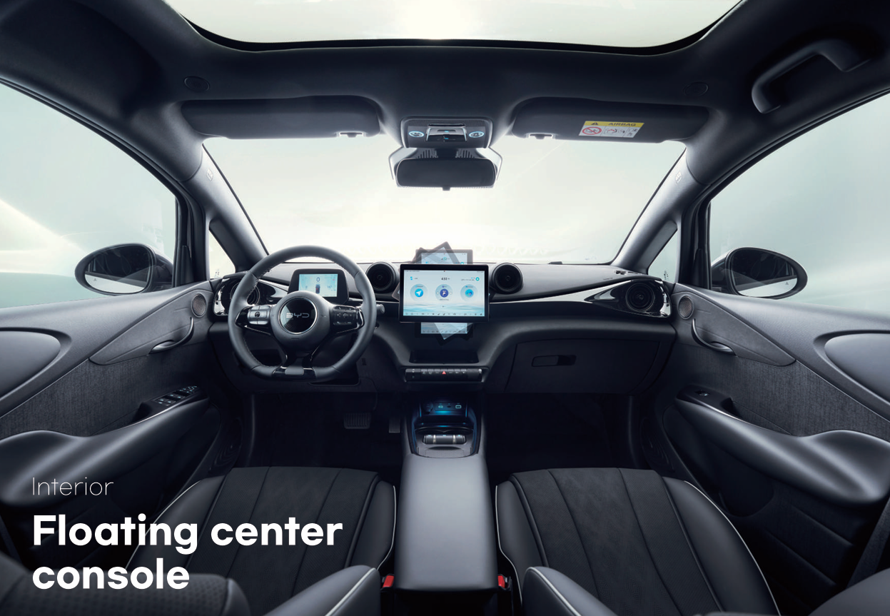 BYD 돌핀의 가장 큰 강점은 단연 실내 공간이다. 전장은 4290㎜로 소형 해치백에 가깝지만,