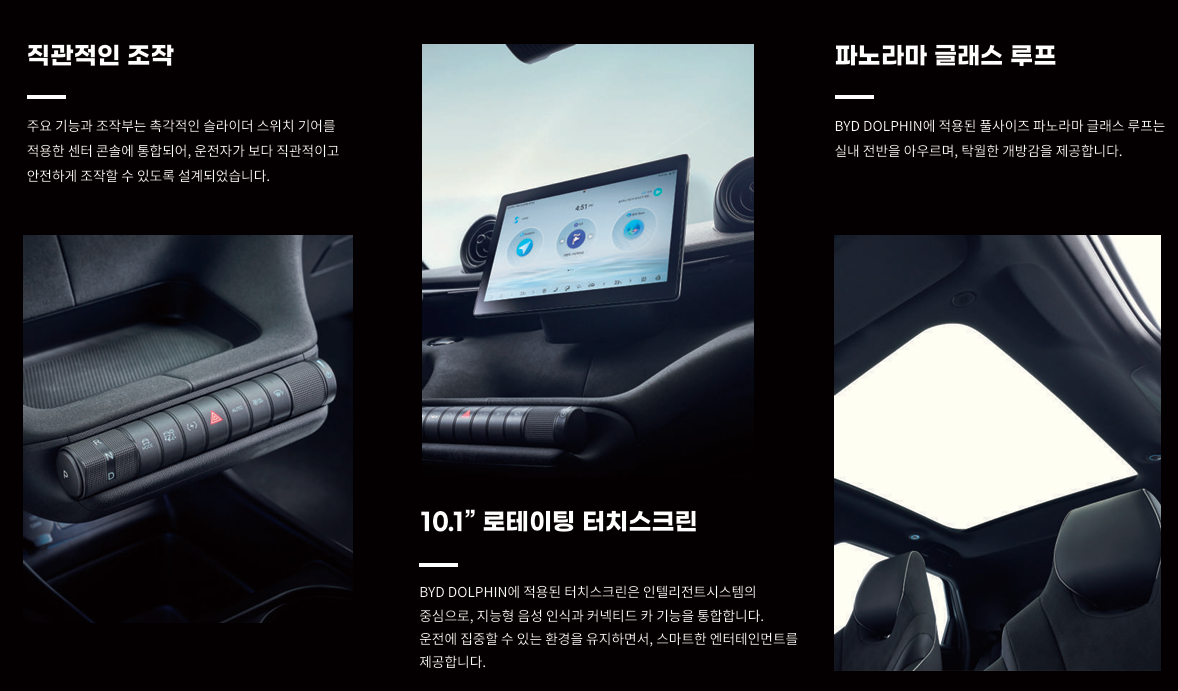 소형 전기 해치백인 돌핀이 체급을 넘어선 공간감을 제공한다는 의미다.